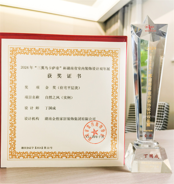日前,由湖南省室內(nèi)裝飾協(xié)會主辦、協(xié)會設(shè)計(jì)專業(yè)委員會、各市州室內(nèi)裝飾協(xié)會和相關(guān)院校承辦,海爾智家湖南分公司協(xié)辦的2024年 “三翼鳥卡薩帝”杯湖南省室內(nèi)裝飾設(shè)計(jì)雙年展頒獎(jiǎng)典禮在長沙舉行。金煌滿載而歸,共斬獲3個(gè)金獎(jiǎng)、2個(gè)銅獎(jiǎng)、1個(gè)優(yōu)秀獎(jiǎng)。