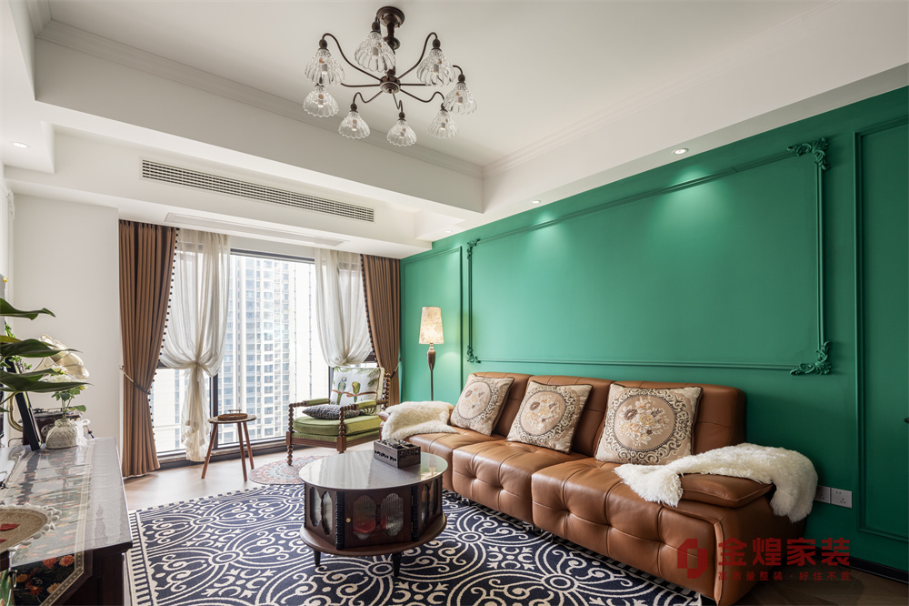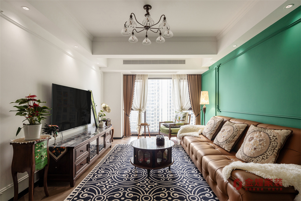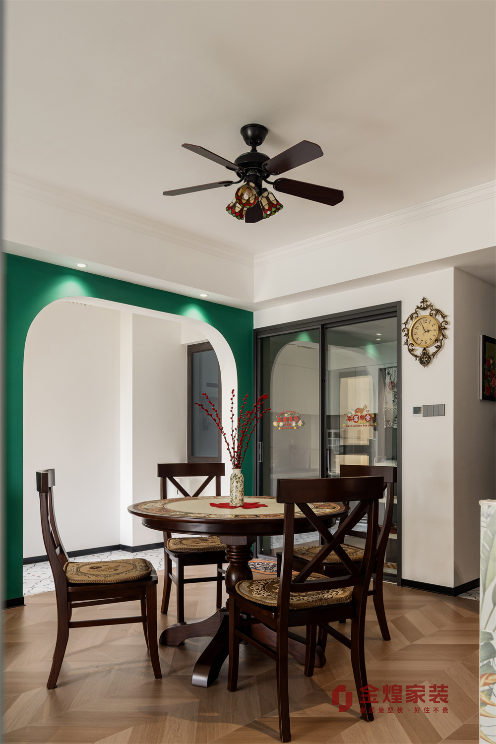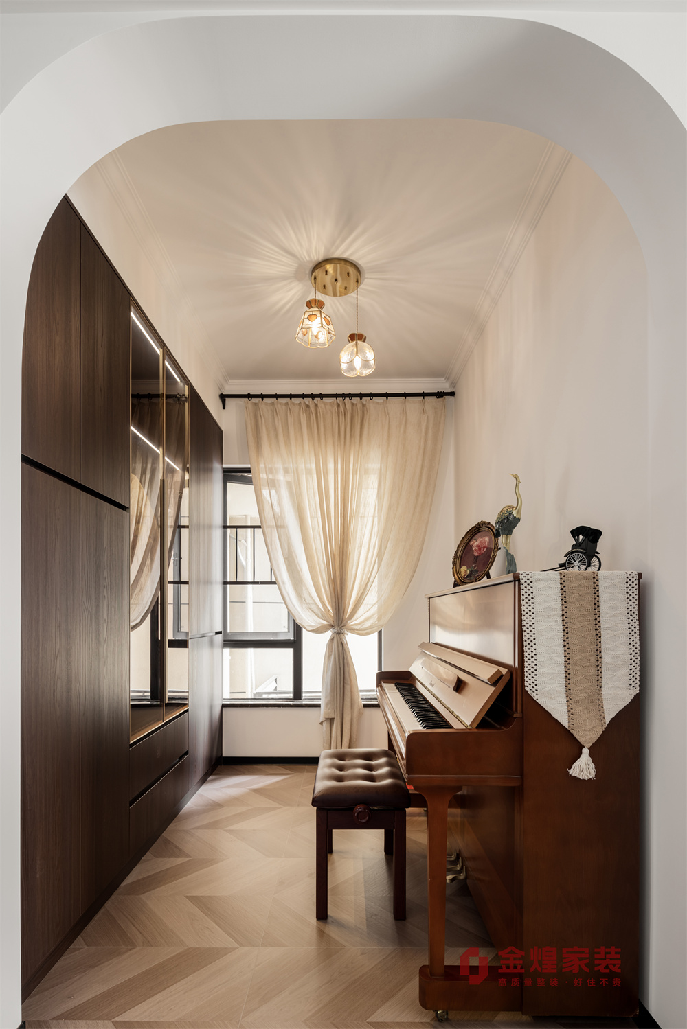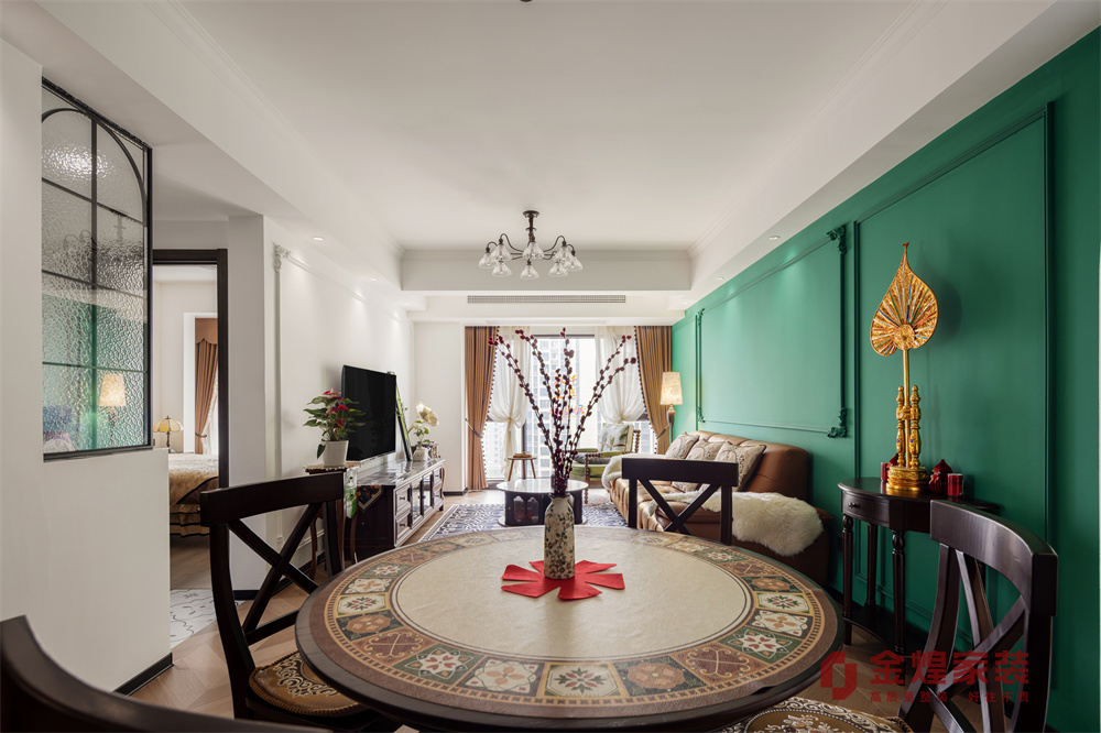 本案例拋棄傳統(tǒng)居家設(shè)計理念,設(shè)計風格為南洋復(fù)古風格,客廳做了一個開放式鋼琴房,餐廚區(qū)域做了一個整的7字形的櫥柜使空間最大化.