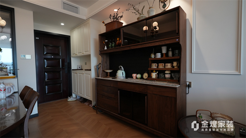 從客廳的深色皮質(zhì)沙發(fā)、木質(zhì)電視柜,到餐廳的玻璃餐桌、深色餐邊柜,再到臥室的白色衣柜、深色木質(zhì)床,都體現(xiàn)了中古風(fēng)格對材質(zhì)和色彩的選擇偏好。