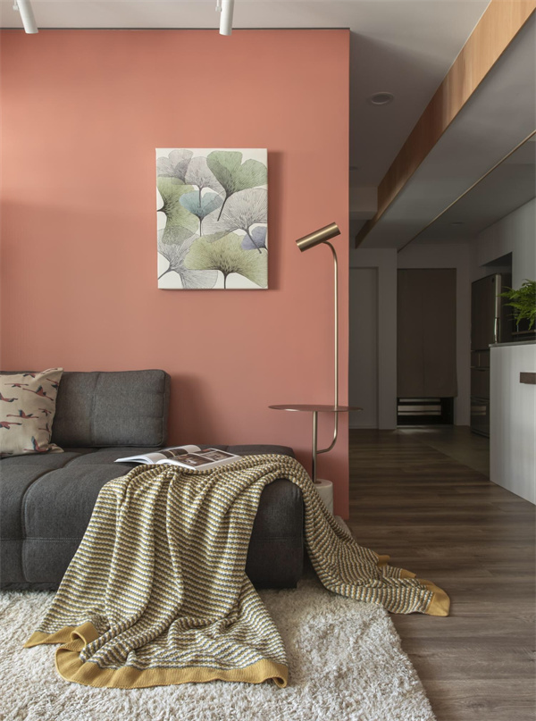 而粉色墻壁作為點(diǎn)綴,為客廳注入了一絲柔和的色彩,既溫暖又不失清新。墻上掛著北歐風(fēng)格的裝飾畫與壁飾,與整體裝修風(fēng)格相得益彰,展現(xiàn)出簡約而不簡單的美感。