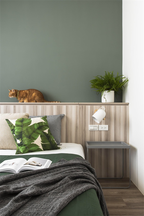 主臥以中性色調(diào)為主,淡灰色墻面+原木色地板組合,柔軟舒適的床品,搭配精致的軟裝,打造溫馨愜意的睡眠空間。精心挑選的綠植,為空間增添一份清新和舒適感。