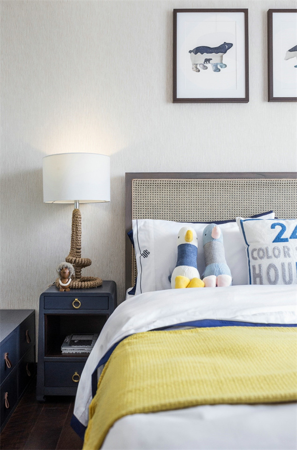 兒童房充滿了童趣與溫馨。房間的主色調(diào)為柔和的粉色和米白色,墻面上裝飾著可愛(ài)的壁畫(huà)和精致的裝飾線條,床上鋪設(shè)著柔軟的棉質(zhì)床品,配以可愛(ài)的卡通抱枕和玩偶,增加了房間的童趣,營(yíng)造出一個(gè)夢(mèng)幻般的童話世界。