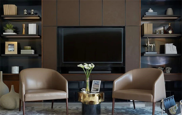 中性色調(diào)的墻面與豪華材質(zhì)的家具,加上大量棕色點(diǎn)綴,營(yíng)造出高雅而舒適的氛圍。精致的照明設(shè)計(jì)和選用的藝術(shù)裝飾品增添了層次感,讓客廳更加引人注目。無(wú)論是休閑娛樂(lè)還是款待賓客,都能帶來(lái)無(wú)與倫比的享受。