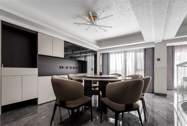 意式輕奢餐廳強(qiáng)調(diào)用餐空間的舒適和尊貴感。精美的吊燈或壁燈,以及細(xì)致考究的餐具擺設(shè),進(jìn)一步提升了整個(gè)空間的奢華感和舒適度,打造出一個(gè)與家人和朋友共享美食的完美場(chǎng)所。