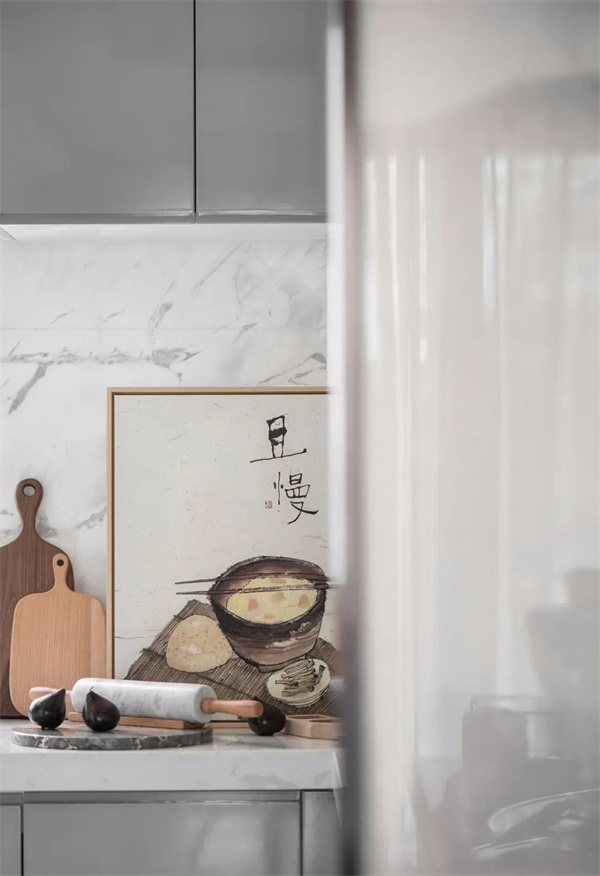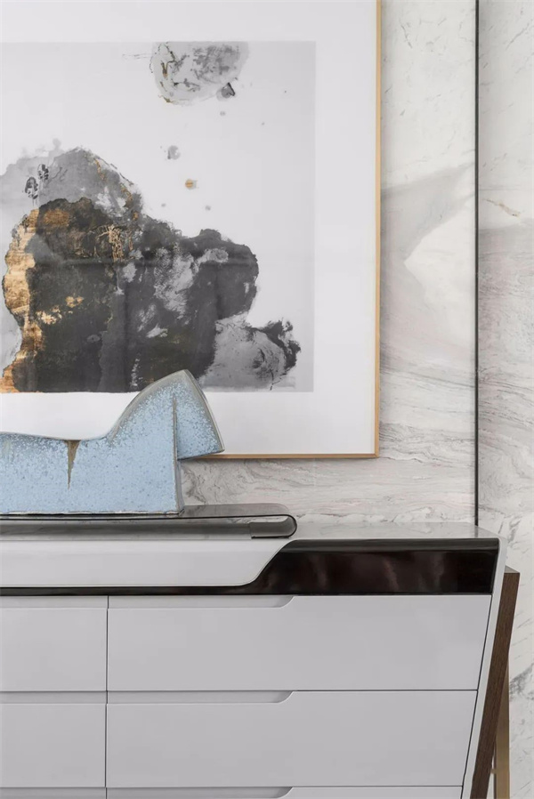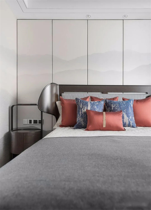 長輩房的色調(diào)比較樸素淡雅,以淺灰色為主,優(yōu)雅中增添了幾分清新靈動(dòng)之氣。藝術(shù)掛畫搭配花瓶綠植更增加了對(duì)自然、平靜和舒適的追求。整個(gè)臥室設(shè)計(jì)風(fēng)格簡約、溫馨,給主人打造一個(gè)舒適輕松的休息空間。