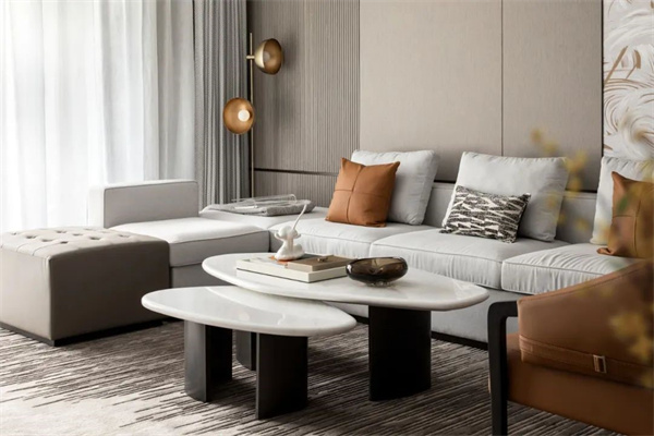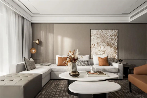 在客廳的設(shè)計(jì)中,采用簡約的家具和裝飾品,搭配簡約風(fēng)格的藝術(shù)裝飾和照明燈具,選擇中性色調(diào)和柔和的色彩搭配,營造出輕松宜人的氛圍。同時(shí),充分利用空間,確保流線型布局,使客廳顯得更加開闊和通透。