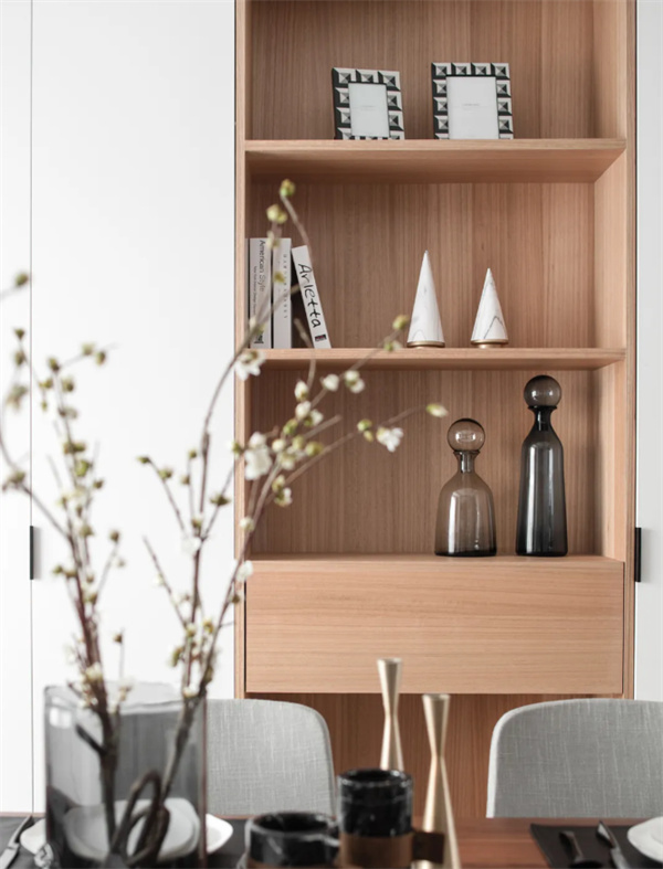 本案以黑白灰為主調(diào),創(chuàng)造出一個充滿精致和簡約之美的室內(nèi)環(huán)境。黑、白和灰的中性色調(diào)是主宰整個裝修的基調(diào),打造出一種干凈、明亮、寬敞的氛圍。