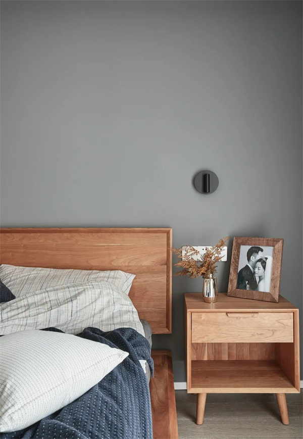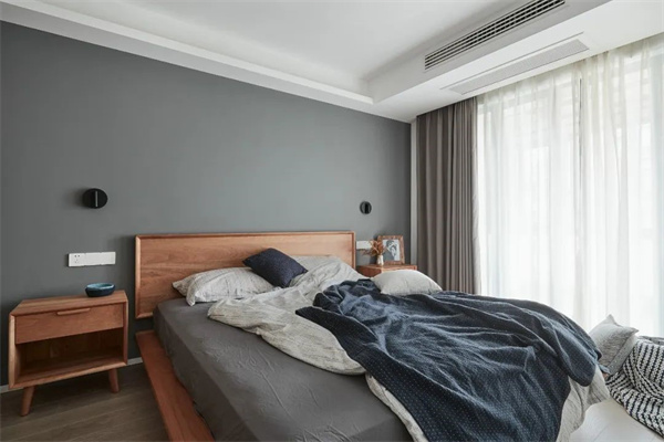 主臥打破了傳統(tǒng)的沉悶感,選擇明亮的白色和淡雅的灰色組合,搭配原木色的床頭和家具,營造出輕松寧靜的氛圍。軟裝布置由清新的純棉材質(zhì)構(gòu)成,簡約而舒適。窗簾選擇透光的材質(zhì),每天清晨都能被溫柔的陽光喚醒,業(yè)主可以盡情放松,開啟美好的一天。