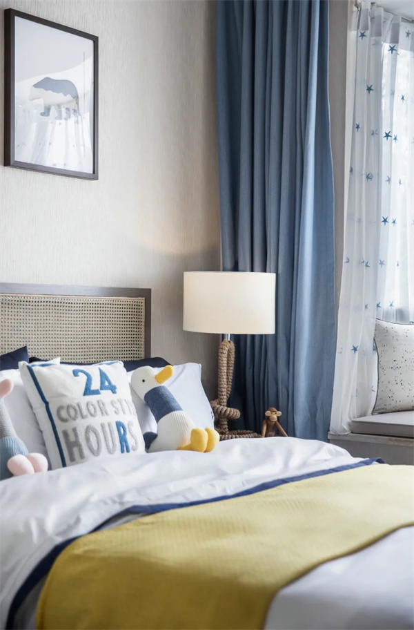 兒童房充滿了童趣與溫馨。房間的主色調(diào)為柔和的粉色和米白色,墻面上裝飾著可愛的壁畫和精致的裝飾線條,床上鋪設(shè)著柔軟的棉質(zhì)床品,配以可愛的卡通抱枕和玩偶,增加了房間的童趣,營造出一個夢幻般的童話世界。