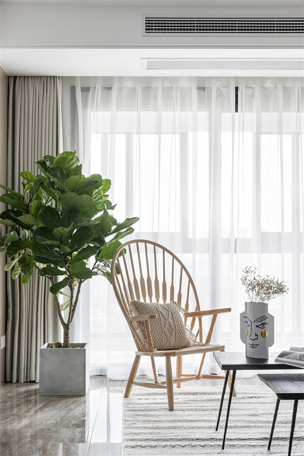 北歐風(fēng)格以簡(jiǎn)單結(jié)構(gòu)與舒適功能的完美結(jié)合為特點(diǎn),融入現(xiàn)代、實(shí)用和精美的設(shè)計(jì)元素,配合柔和的光線透過窗簾灑進(jìn)空間,營(yíng)造出一種溫暖而舒適的氛圍。