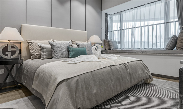 臥室精心挑選高品質(zhì)的床具,柔和舒緩的色調(diào)給人寧?kù)o的感受歐,搭配柔軟舒適的床品和軟裝,保證了睡眠質(zhì)量。同時(shí)考慮到大空間的照明需求,臥室布置的燈具都以溫柔的意象為主題,為空間營(yíng)造貼心的守護(hù)感。