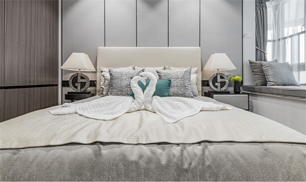次臥設(shè)計(jì)同樣精致考究,精選舒適柔軟的床品和簡(jiǎn)約裝飾畫,營(yíng)造出輕松愜意的睡眠空間。柔和的色調(diào)搭配,讓人感到寧?kù)o和舒緩,為身心帶來最佳的休息體驗(yàn)。