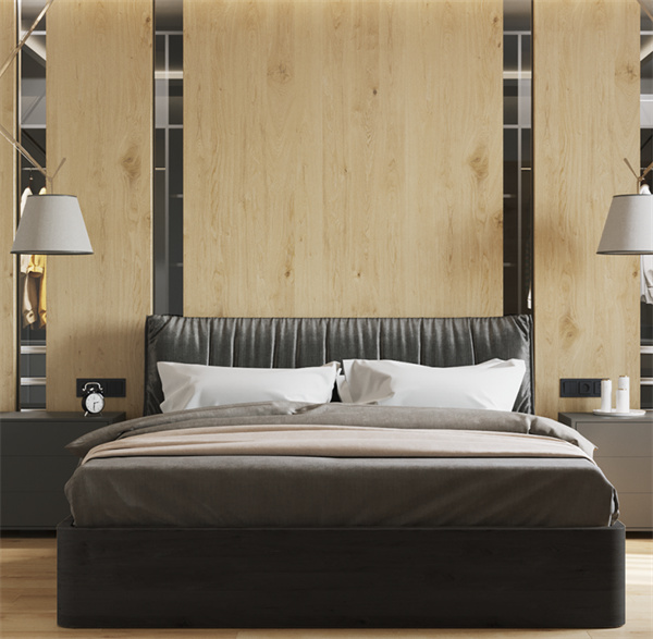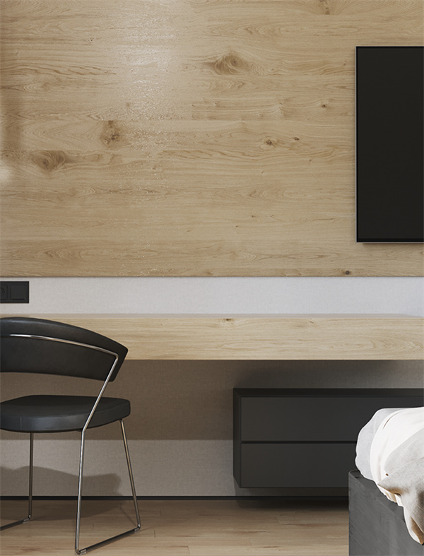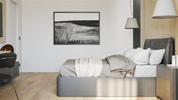 原木風(fēng)的臥室注重舒適感,床頭的原木飾面與地面木地板巧妙地融為一體,呈現(xiàn)出獨(dú)特的線條美感。白灰相間的床品搭配簡約風(fēng)格家具,打造寧靜的睡眠環(huán)境,營造出溫馨舒適的氛圍。