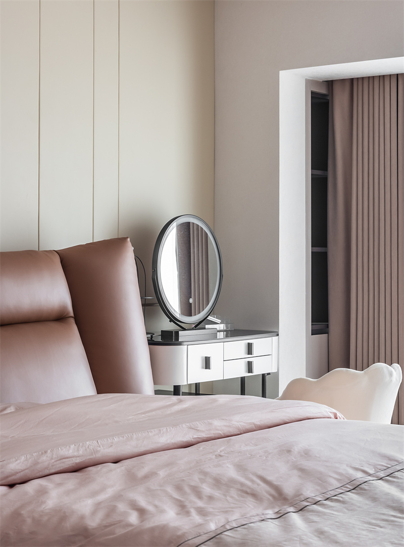 簡(jiǎn)潔的線條和精致的細(xì)節(jié)設(shè)計(jì),讓整個(gè)房間顯得干凈利落且充滿(mǎn)現(xiàn)代感。兩側(cè)對(duì)稱(chēng)擺放的床頭柜和裝飾品,體現(xiàn)了主人對(duì)生活品質(zhì)的細(xì)致追求。無(wú)論是作為客房還是家庭成員的私人空間,都能提供一個(gè)舒適、寧?kù)o的休息環(huán)境。